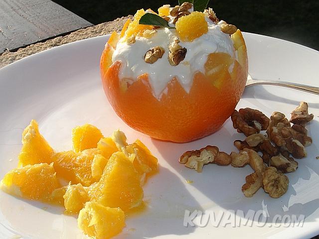 Nežna, ukusna i osvežavajuća pomarandža, punjena sladoledom i orasima. Odličan letnji desert.