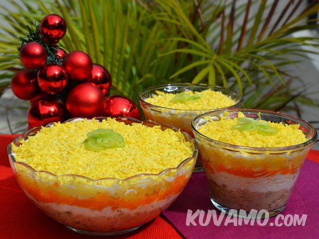 Salata Mimoza - inspirativna, neodoljiva, ukusna. Kao takva već je postala tradicionalno praznično jelo u Rusiji. U klasičnom receptu Mimoze koristi se konzervisani losos, ali može se staviti bilo koja riba (naprimer tuna). Salata Mimoza se pravi u redovima.